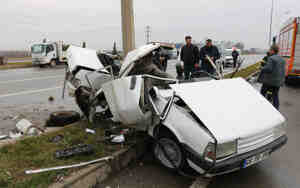 Kahramanmaraş-Adana karayolunda meydan gelen korkunç kazada; edinilen bilgiye göre kent merkezinden Adana istikametine seyir halindeki Mehmet K. (46) idaresindeki 46 TP 259 plakalı otomobil, yağış nedeniyle kayganlaşan yolda direksiyon hakimiyetini kaybederek önce refüje sonra, aydınlatma direğine çarptı.