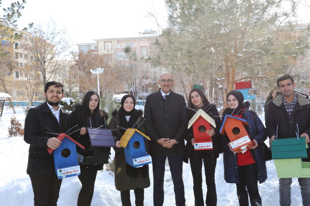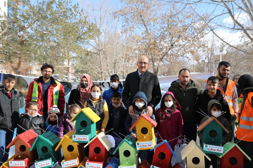Van İpekyolu Belediyesi Çevre Koruma ve Kontrol Müdürlüğü çalışanları, soğuk havalarda kuşların barınmasını ve beslenmesini sağlamak amacıyla yaptıkları kuş yuvaları, İlçe merkezinde bulunan Kent Park’taki ağaçlara ağaçlara asıldı.