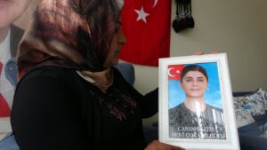 Van’da, terör örgütü PKK tarafından dağa kaçırılan kızı Şeyma için evlat nöbetine katılan Nazlı Sancar, örgütün fesih kararı sonrası umut dolu mesajlar verdi. DEM Parti Van İl Başkanlığı binası önünde çocukları için 101 haftadır eylem yapan aileler arasında yer alan Sancar, “Yüreği yanan annelerin duaları kabul oldu” dedi.