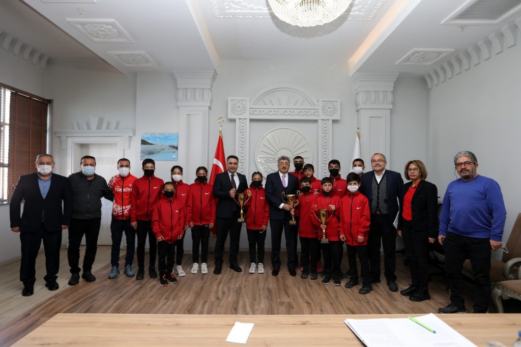 Türkiye Atletizm Şampiyonasında dereceye giren Van Büyükşehir Belediyesi Atletizm Takımının sporcuları, Van Valisi ve Büyükşehir Belediye Başkan Vekili Mehmet Emin Bilmez’i ziyaret etti.