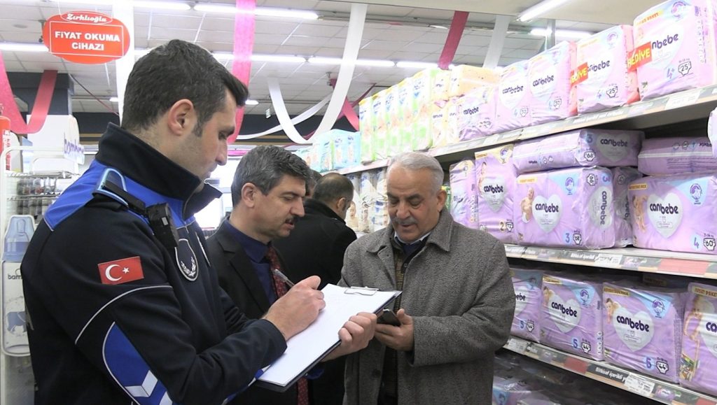 Tüketicilerin temel ihtiyaç maddeleri kapsamında olan sabun, şampuan, deterjan, dezenfektan, ıslak mendil, tuvalet kağıdı, kağıt havlu, kağıt mendil, peçete ile bebek bezleri gibi ürünlerin satışında KDV oranının yüzde 18’den yüzde 8’e indirilmesini ve bunun etiket fiyatlarına yansıtılıp yansıtılmadığını denetleyen ekipler, uygulamaya uymayan marketlere yönelik tutanaklar düzenledi.